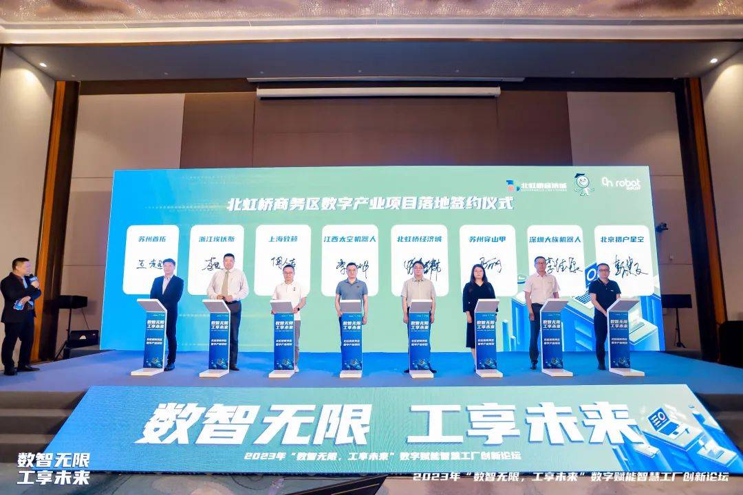 隨后北虹橋經(jīng)濟城、蘇州首拓、浙江埃伏斯、上海致籟、江西太空機器人、蘇州穿山甲、深圳大族機器人、北京獵戶星空一同簽約北虹橋商務(wù)區(qū)數(shù)字產(chǎn)業(yè)項目。這一合作將為嘉定區(qū)數(shù)字化產(chǎn)業(yè)的發(fā)展注入新動力。各企業(yè)將攜手合作,共同研發(fā)創(chuàng)新產(chǎn)品、推進數(shù)字化制造技術(shù)應(yīng)用,并在北虹橋商務(wù)區(qū)打造一流的數(shù)字產(chǎn)業(yè)基地。這一簽約舉措標(biāo)志著數(shù)字產(chǎn)業(yè)的進一步融合與發(fā)展,將為中國的經(jīng)濟轉(zhuǎn)型和智能制造提供強有力的支持,推動數(shù)字經(jīng)濟的快速發(fā)展,為未來創(chuàng)造更加繁榮的商業(yè)環(huán)境。
