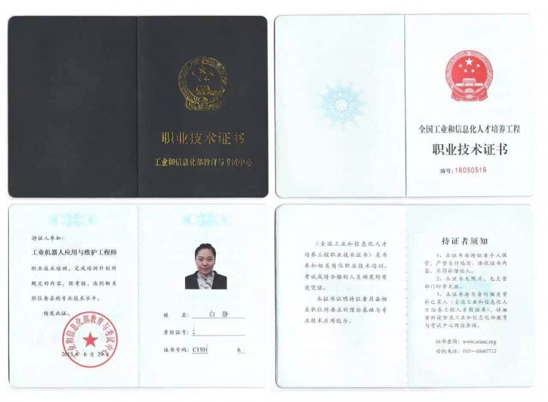 《工業(yè)機(jī)器人應(yīng)用與維護(hù)工程師》工信部認(rèn)證證書