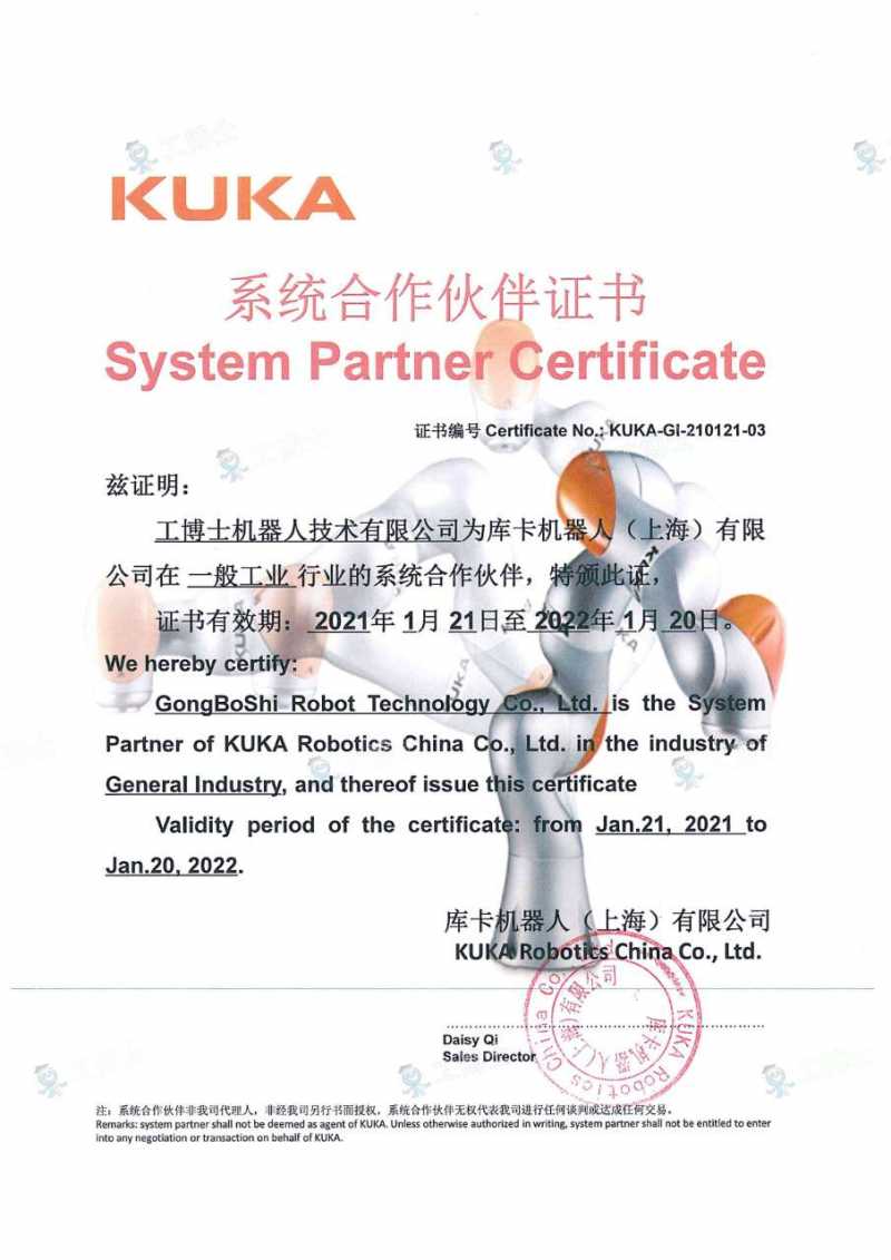 庫卡機器人授權證書