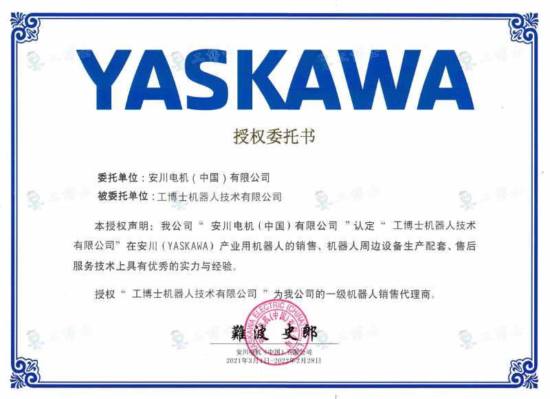 安川YASKAWA機器人授權代理證書