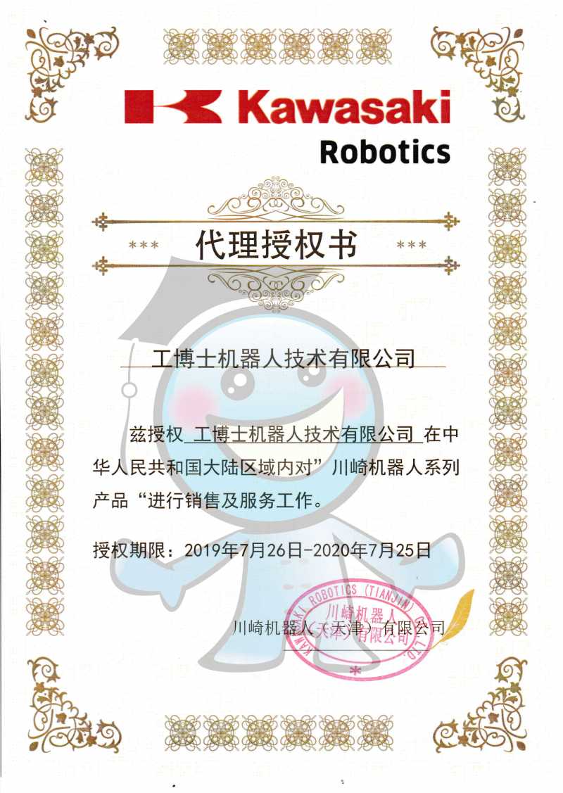 川崎機器人授權(quán)證書