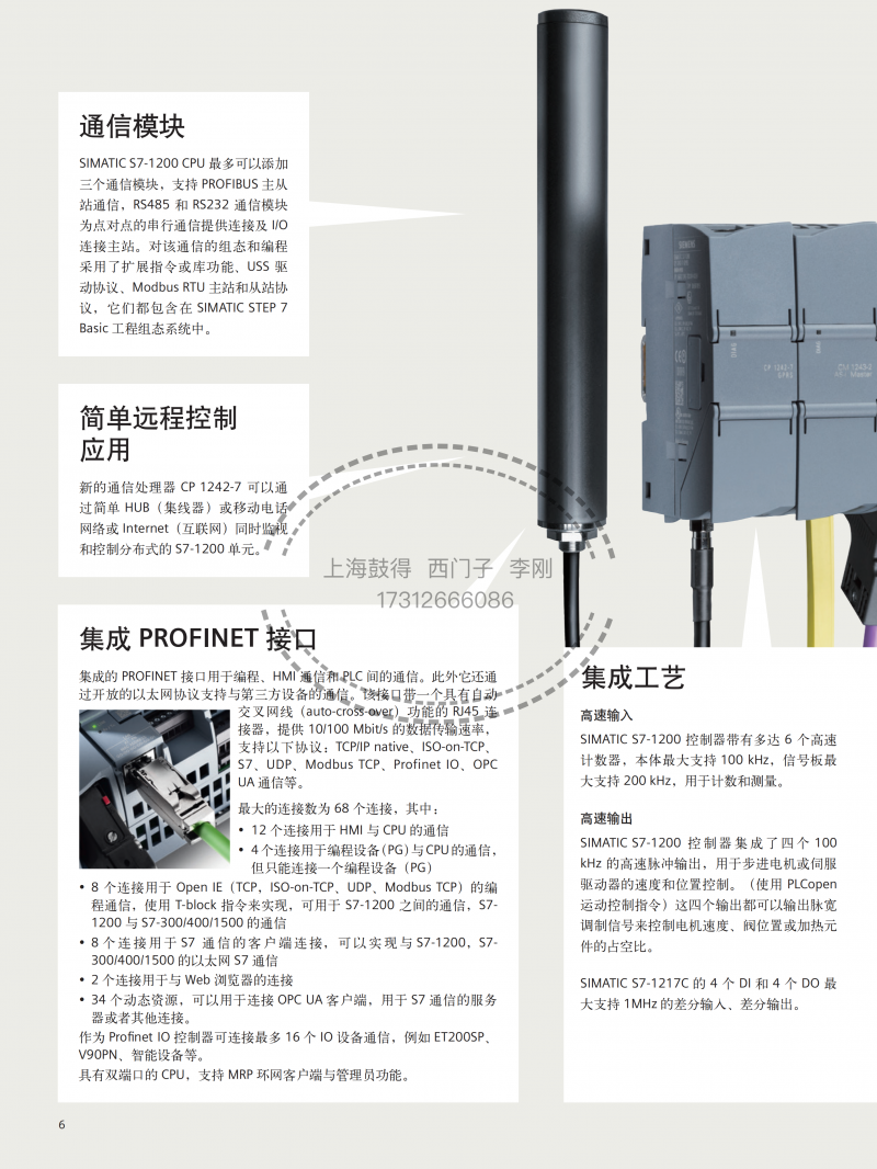 SIMATIC S7-1200 控制器具有高速計數器、脈寬調制、脈沖序列輸出、速度控制和定位等集成技術工藝功能,