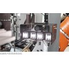 首先,將成束的型材棒輸入,由操作員借助機械手將其分開。接著再橫向輸送至夾緊 裝置的位置,并由滾筒輸送機送入夾緊裝置。為了識別銅質型材的精確位置,維蘭德工 業生產設備有限公司采用了KUKA.VisionTech 系統,該系統安裝在庫卡機器人上受到 操作。這套系統將攝影系統的數據傳輸到主機上,透過軟件進行解讀,然后作為 3D 立體鋸切曲線輸出(這一過程在自動化解決方案之前仍需透過手動方式利用標記來完成) 。基于 CAD 數據定義鋸切面,并傳送給庫卡機器人。然后,機器人根據空間定向使用帶 型鋸執行*多四次的曲線切割。在接下來的工序中,將拉削后的芯材同樣根據空間定 向進行滾壓,以使軟銅硬化。