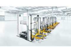 上料:第一步,由一臺叉車或通過定線牽引車將裝有相應車身部件的貨架運往上料站。
