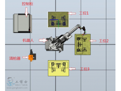 本方案專門針對客戶流水線半自動化焊接件定制。使用 1臺 ABB IRB1410-5/1.44 機器人通過點對點數字輸入輸出信號,與外部設備實現全自動操作。