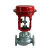 執行機構有正、反兩種形式,當信號壓力輸入為0.2Mpa,推桿伸出膜室(向下運動)的叫正作用,與閥配合構成氣關式。當信號壓力輸入為0.2Mpa,推桿退入膜室(向上運動)的叫反作用,與閥配合構成氣開式。三通閥,因閥內開啟與關閉同時存在,故無氣開、氣關之分。其原理:當信號壓力為“0”時,由于彈簧的預緊力,使閥芯處于初始狀態,常開或常閉。當信號壓力輸入0.2Mpa時,作用在膜片上產生推力,壓縮彈簧,帶動推桿、閥桿、使閥芯移動到極限位置,實現閥門全關(全開)或改變介質流向。當信號壓力輸入為“0”時,作用在膜片上的力消失,由于彈簧的反作用力,使閥芯恢復到初始狀態。