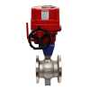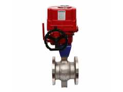 1.電動V型球閥以AC220V、AC380V或DC24V電源電壓作動力,接受來自DCS、PLC系統或調節儀表、操作器等輸入的(4-20mA、0-10mA或1-5VDC)電流信號或電壓信號,即可控制運轉,采有RC、381R、PSQ或HQ型電子式角行程電動執行機構,具有機內伺服操作和開度信號位置反饋、位置指示、手動操作等功能,機電一體化的結構設計,功能強、性能可靠、連線簡單、控制***、體積小、重量輕、流阻小、流量系數大,結構簡單、密封性能好。
